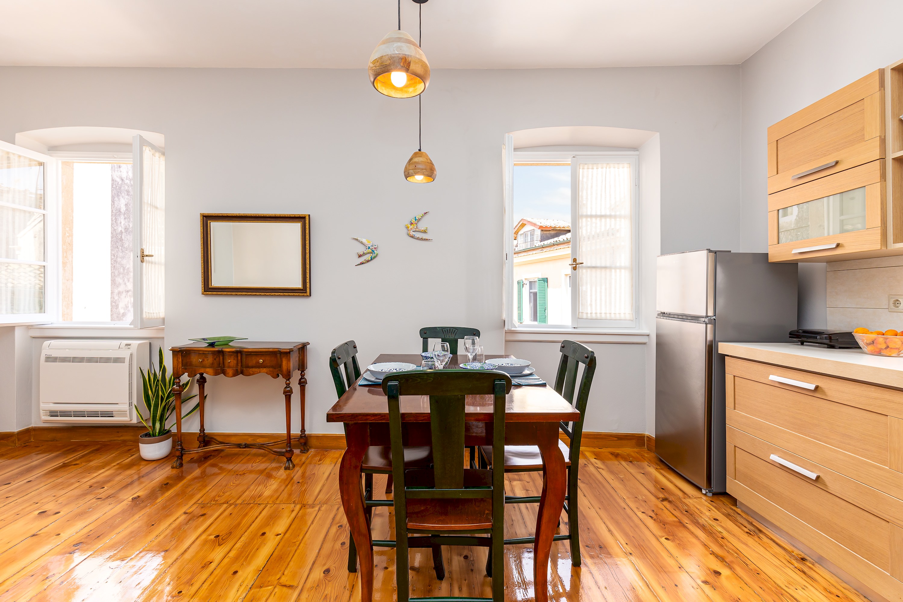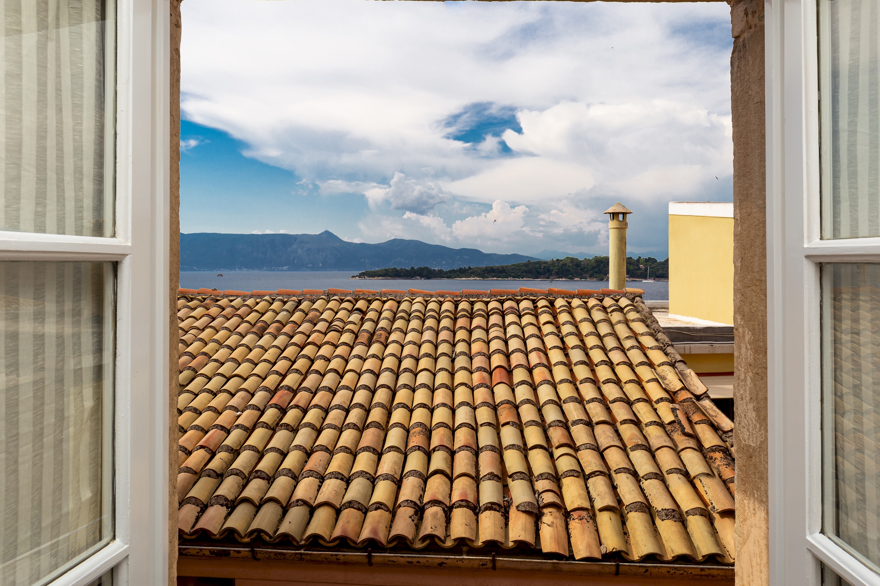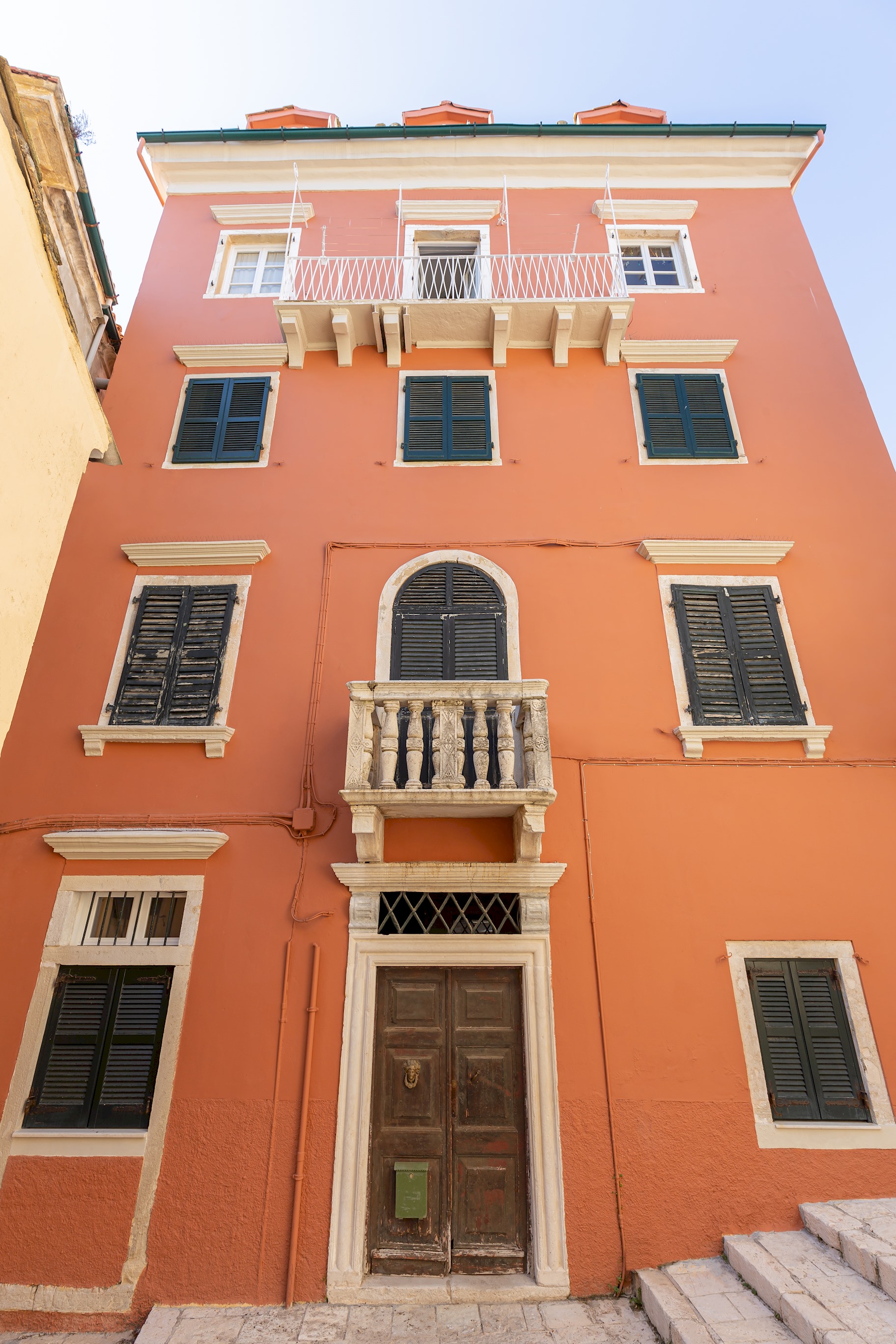 It is located on the third floor of one of the oldest houses in Corfu, dating back to the Venetian era. The look is modest, as are most of the houses in the historic center. However, what stands out about this building, is its stone Venetian balcony, a unique example in the city today, placed directly above the door according to 17th century architecture, with its decorative window aprons and its strictly symmetrical appearance. The stone balcony recalls those of Venice or Verona at the end of the Gothic period.