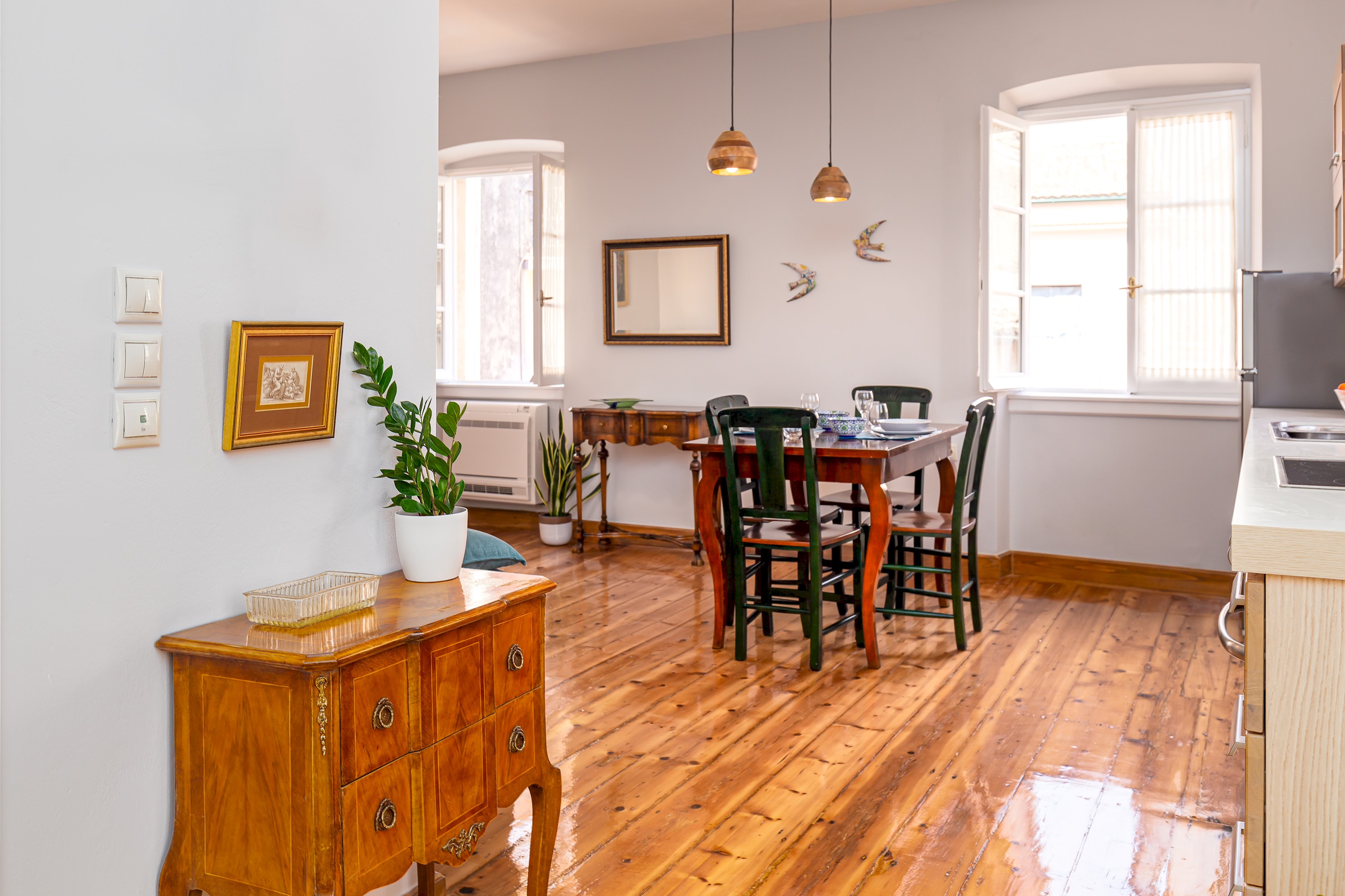 A Venetian era flat, fully renovated with love and passion by the owners, with respect to its valuable history in a comfortable space. Located on the third floor of a historic building with no elevator but with a superb Old Town view.