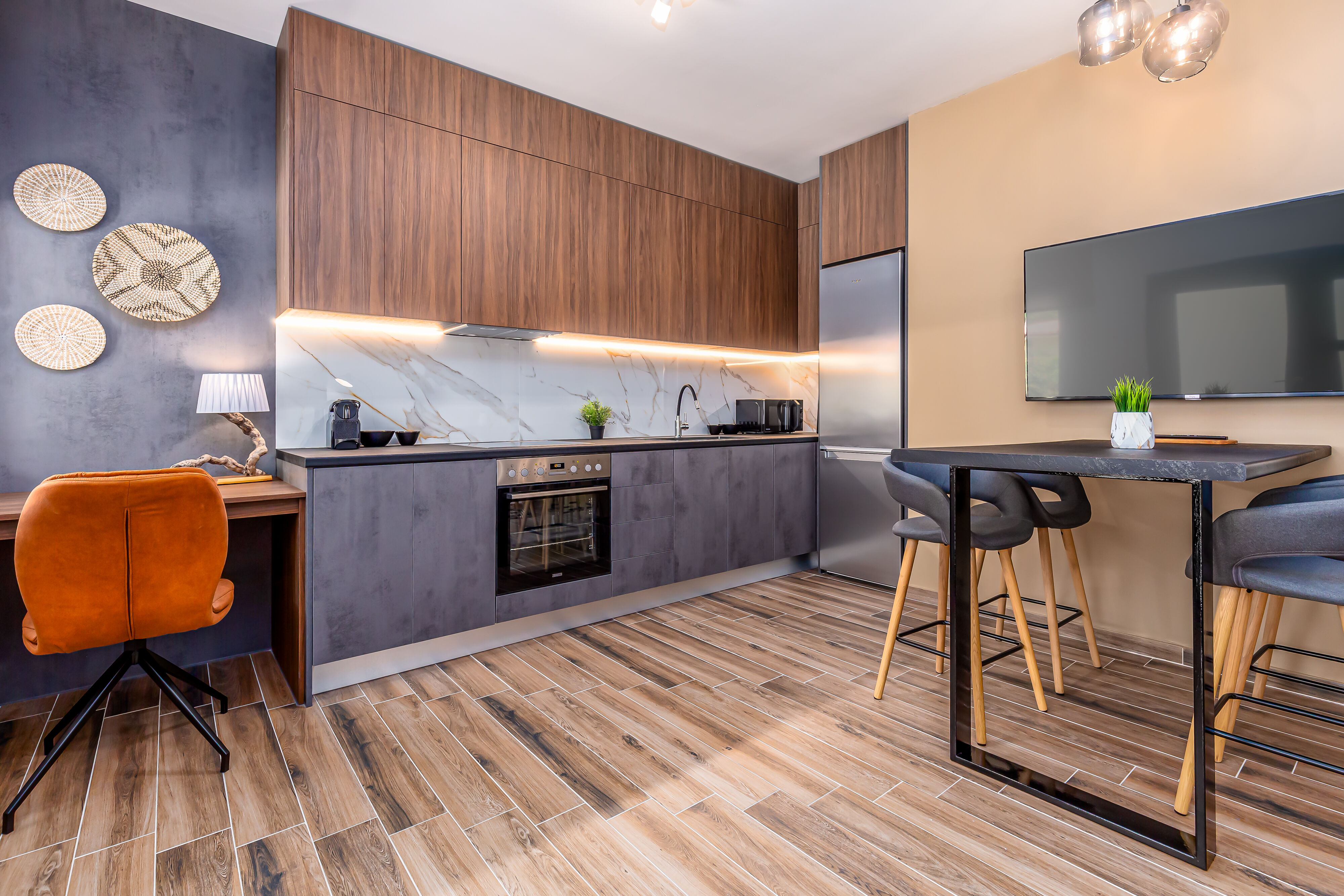 Welcome to TitusCFU Suite! Our newly renovated suite, completed in June 2023, offers a stylish and comfortable accommodation for your stay. The suite features a spacious bedroom with a king bed, ensuring a restful night's sleep. The living room area includes a double sofa bed, providing additional sleeping space for extra guests. The fully equipped kitchen boasts a modern design and state-of-the-art appliances, allowing you to prepare your favorite meals with ease.