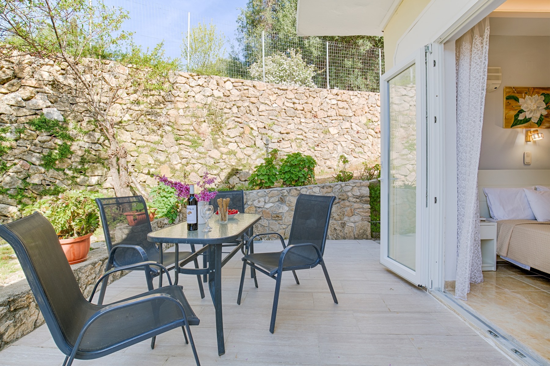 🏡 Three one-bedroom apartments – Ideal for couples, featuring a double or twin bed, ensuite bathroom, kitchenette, and a private veranda or balcony with garden views.