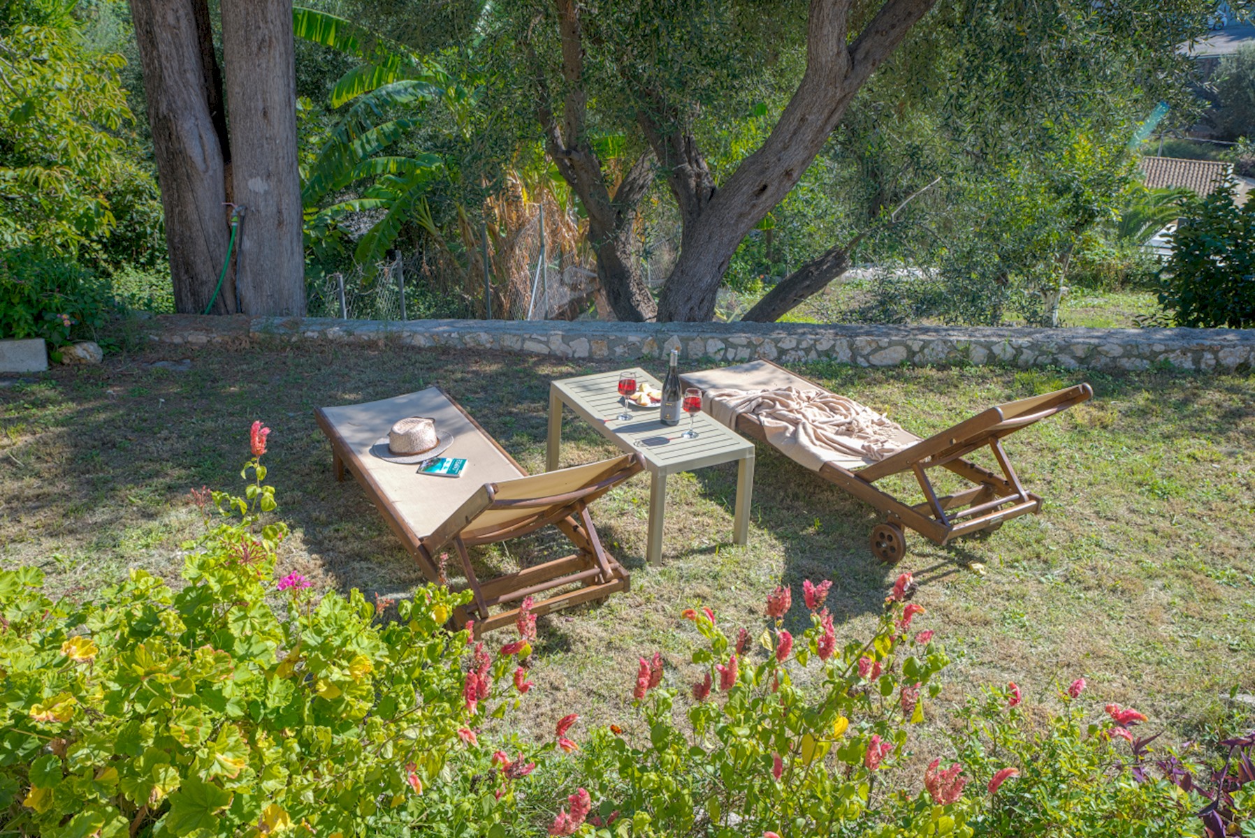 Guests have full access to all indoor spaces of the apartment, as well as the front patio, veranda, and communal garden. Outdoor furniture is available for relaxation.