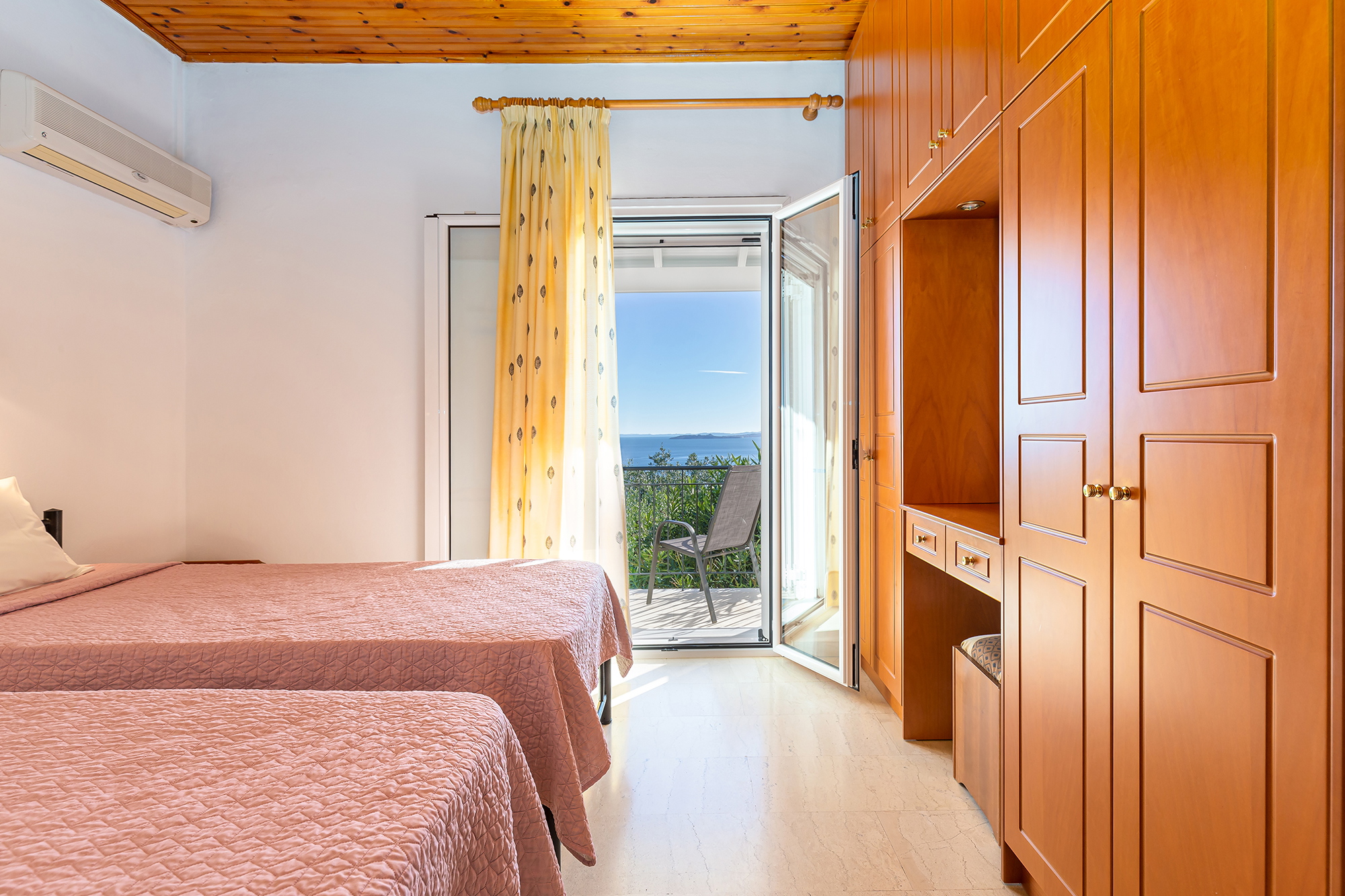 Villa Katina is set on Viglatouri district, above Nisaki beach. It is nestled among lush vegetation, overlooking the breathtaking coastline of Corfu. The pebbly and clean beach of Nissaki is only five minutes’ drive away and the nearest tavernas and mini-markets are just three minutes’ drive downhill.