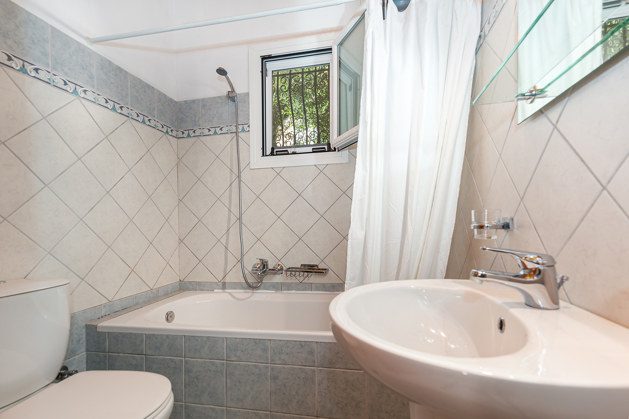 Villa Katina offers a double bed and two single beds, one bathroom with shower, a living room and dining area. The fully equipped kitchen provides all the necessary for you to prepare your meals and breakfast such as electric hob, Nespresso coffee maker, refrigerator, oven, toaster, kettle, microwave oven and a dishwasher. Also, a washing machine is there for your convenience. The large glass windows offer plenty of light and coolness, while from the main terrace you can enjoy your morning coffee staring at the endless Mediterranean blue! Our guests can relax at the cozy living room with smart 32” tv, free satellite channels and Rakuten TV or soak up the sun at the pool area, for moments of pure relaxation. Digital Nomad friendly with Fast & reliable Wi-Fi and fully airconditioned in all areas.