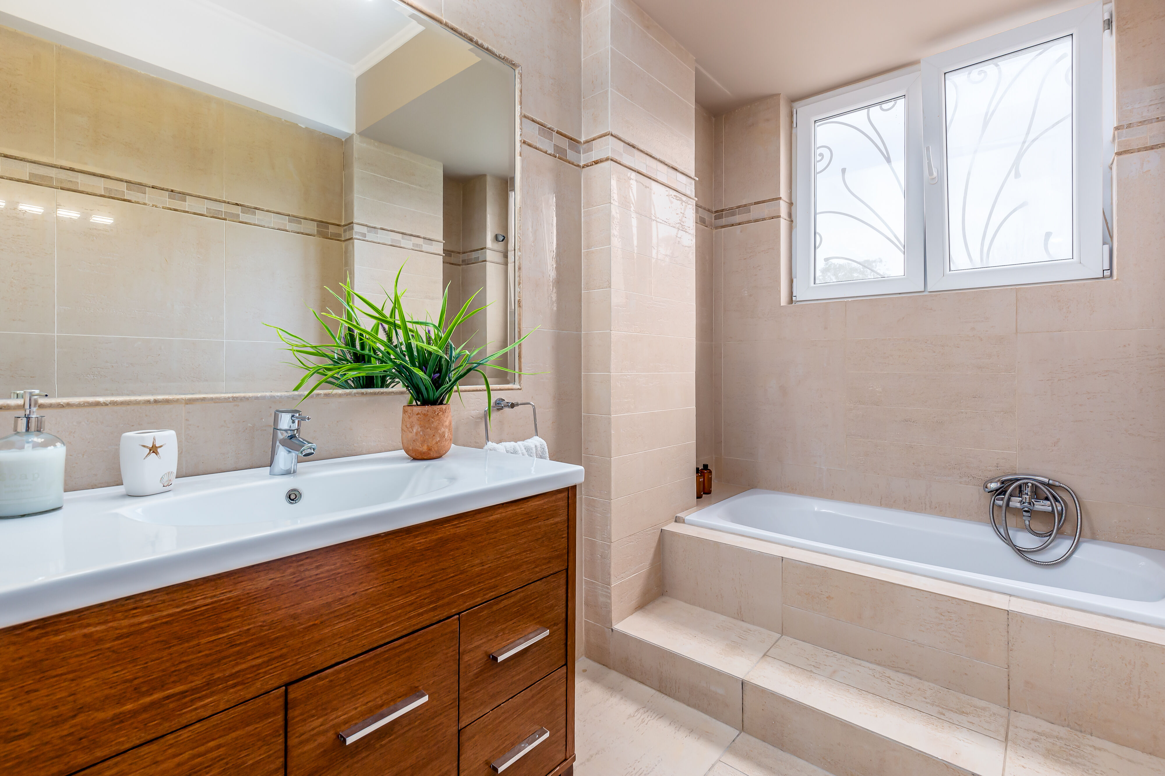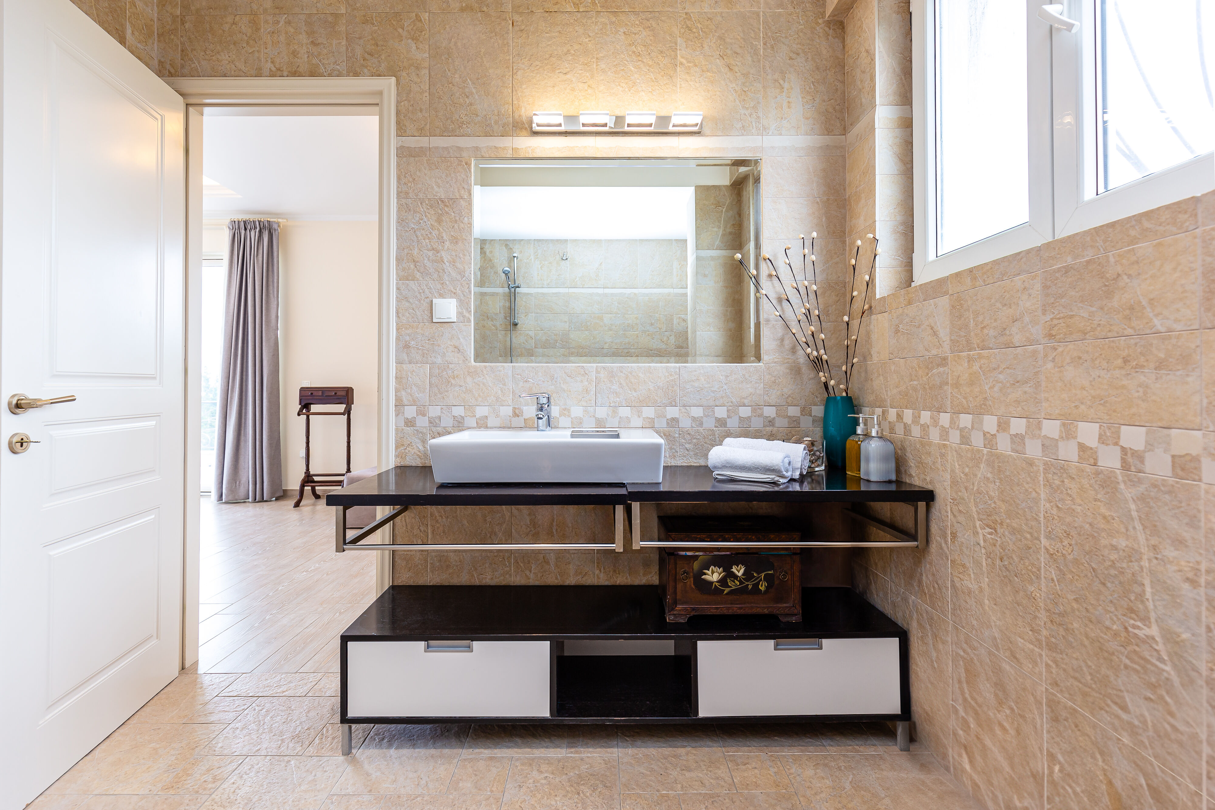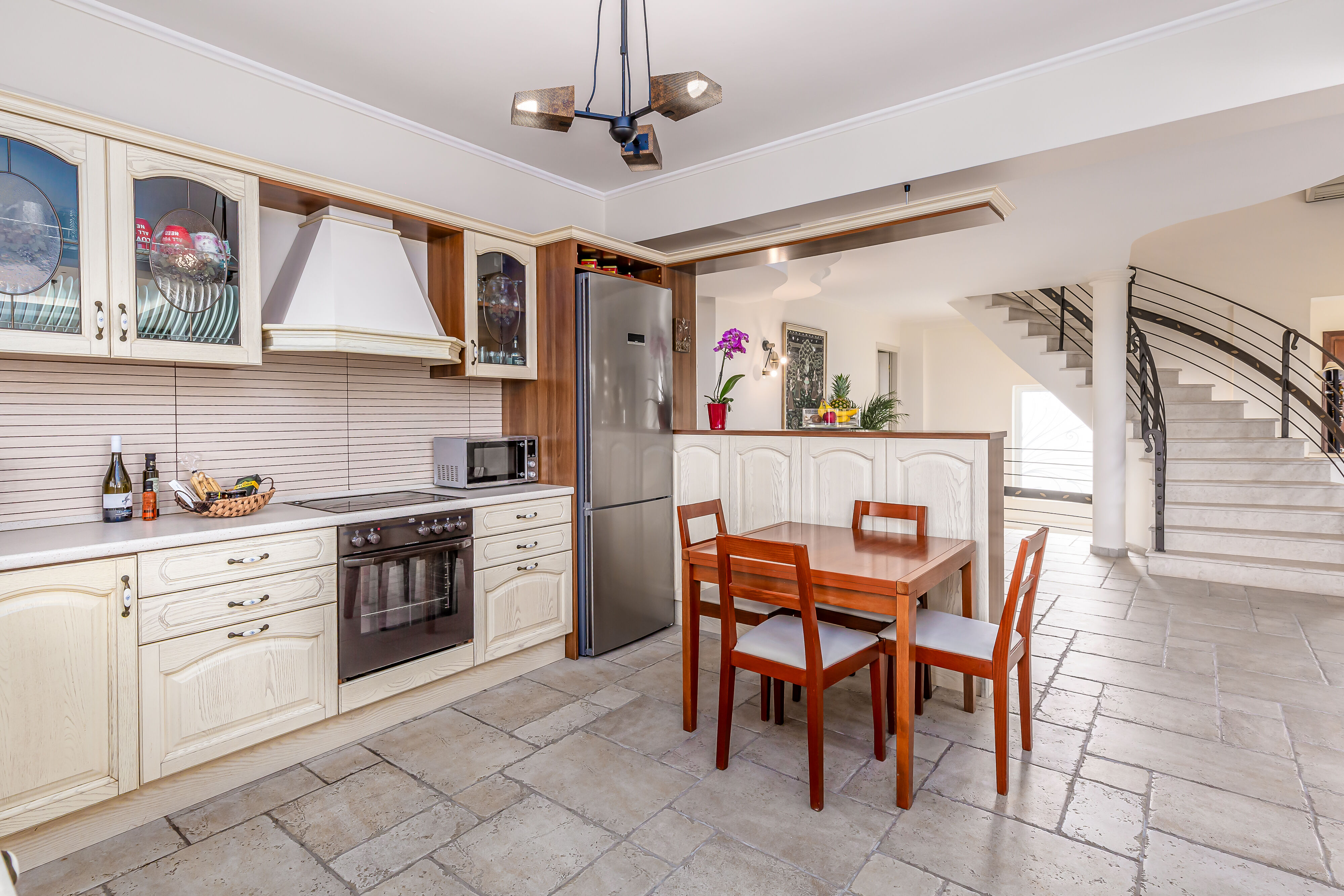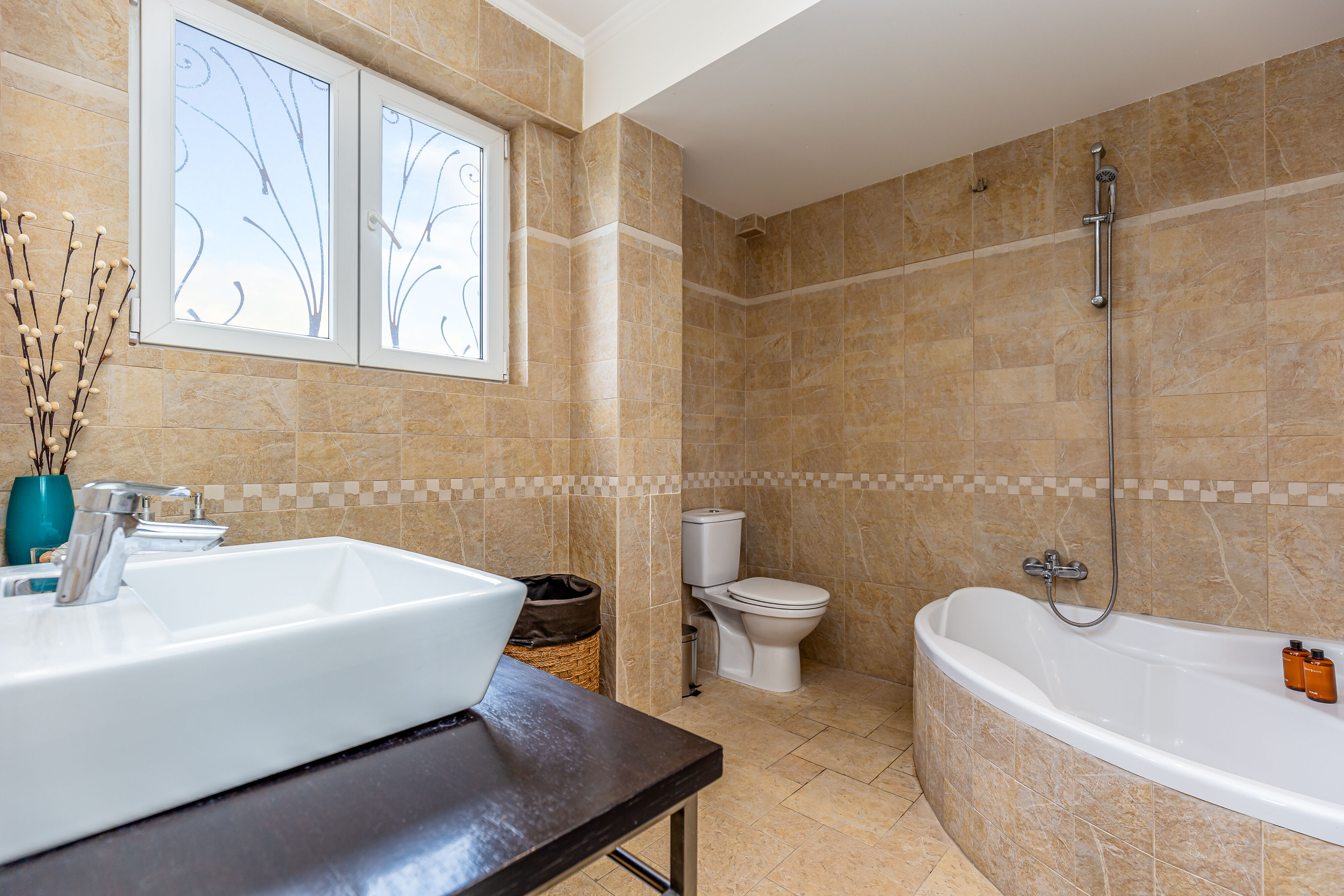 Villa Crystal boasts five exquisite bedrooms, each designed with comfort and relaxation in mind. The tastefully decorated bedrooms offer a serene sanctuary where you can rejuvenate after a day of exploration. Three bathrooms and an additional toilet ensure ample convenience for all guests, with modern fixtures and refreshing amenities provided.