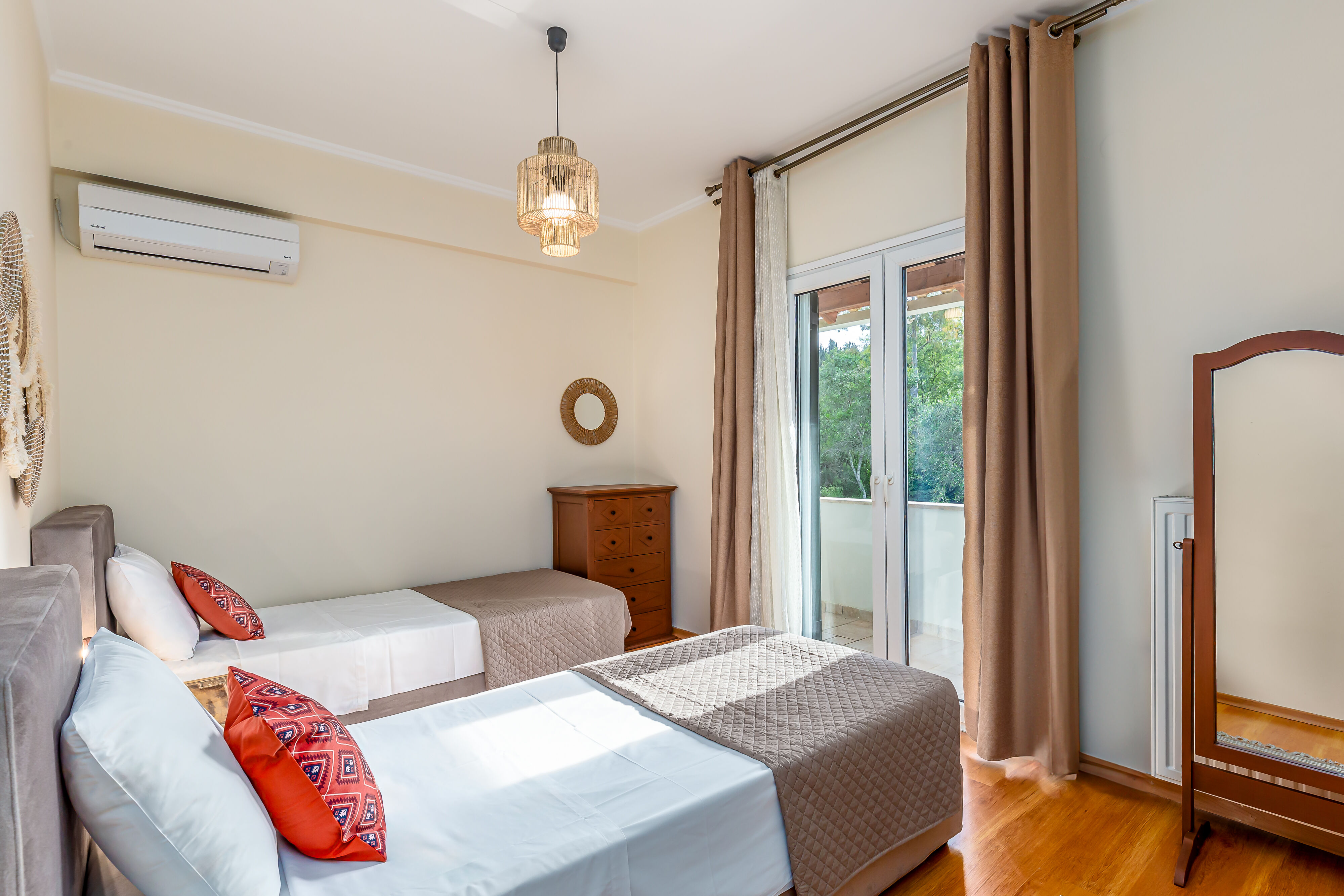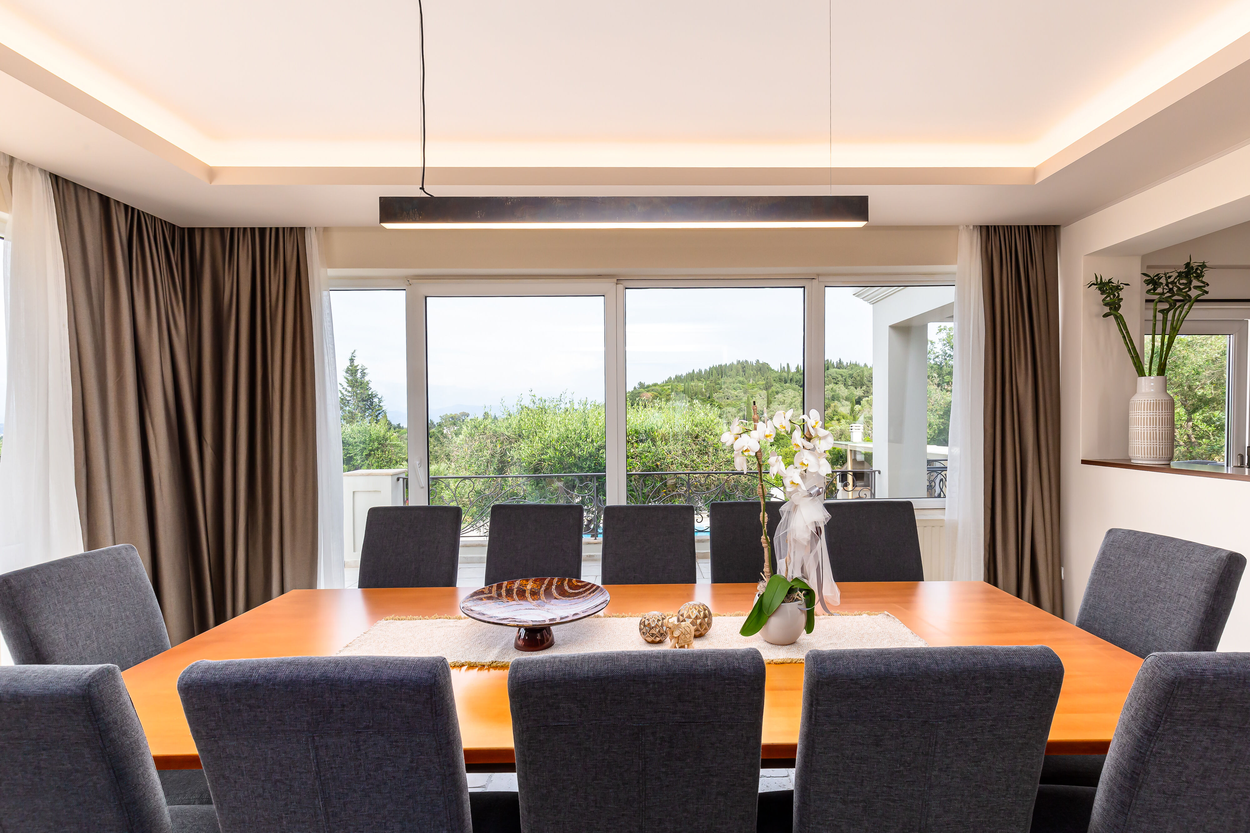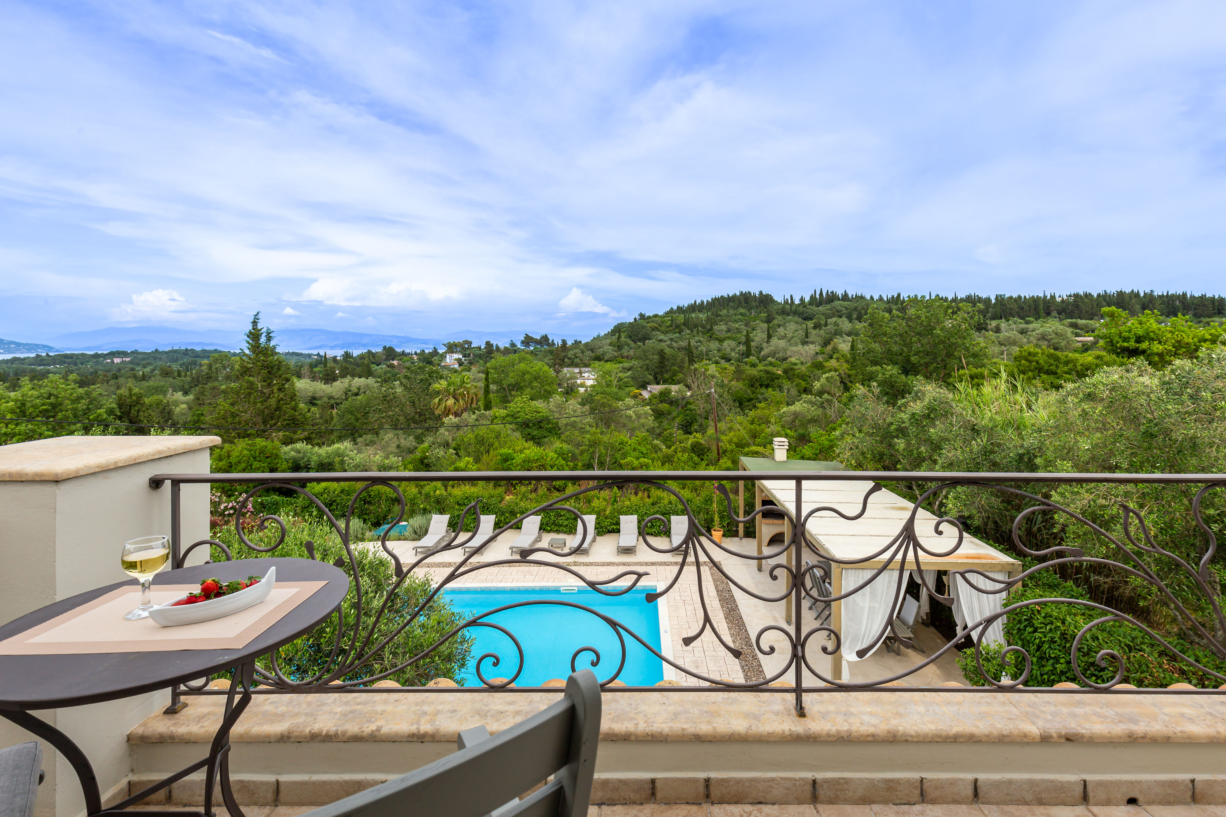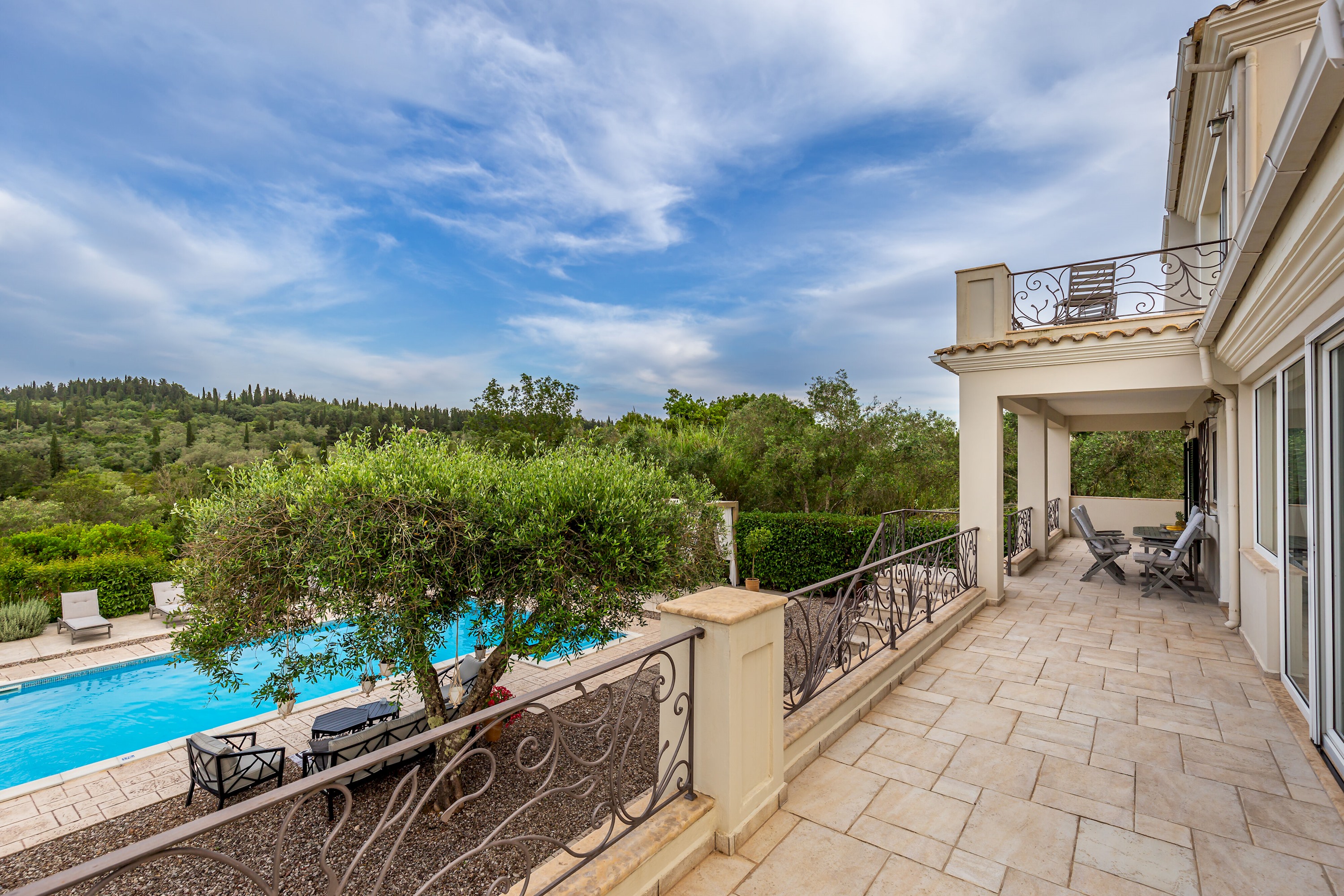 Suitable for up to 12 people, ideal for large families and groups of visitors. Three storey building that consists of 5 bedrooms, 3 bathrooms total, large pool with unobstructed views of Corfiot sea and nature, fully equipped kitchen, smart TV, WIFI, A/C.