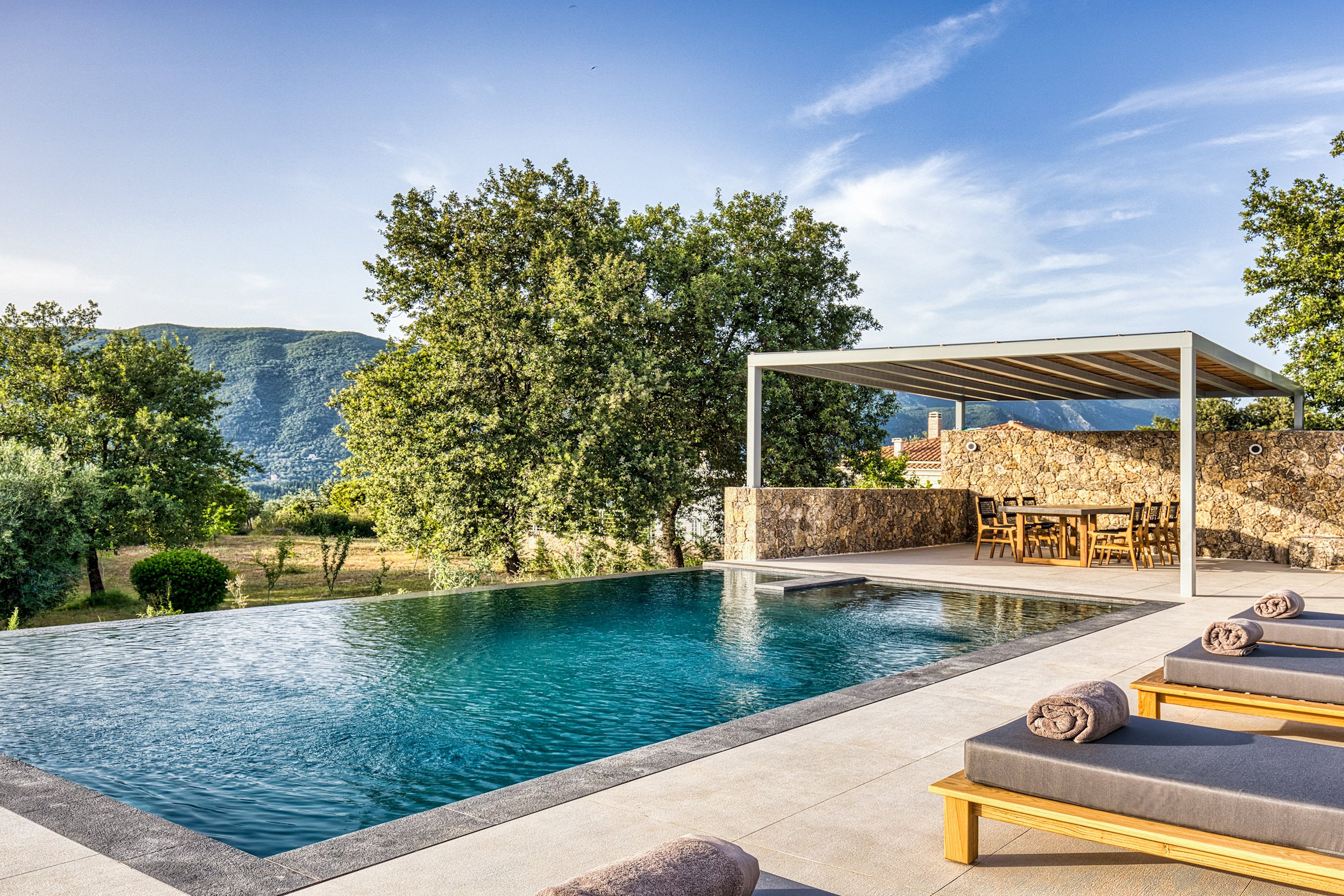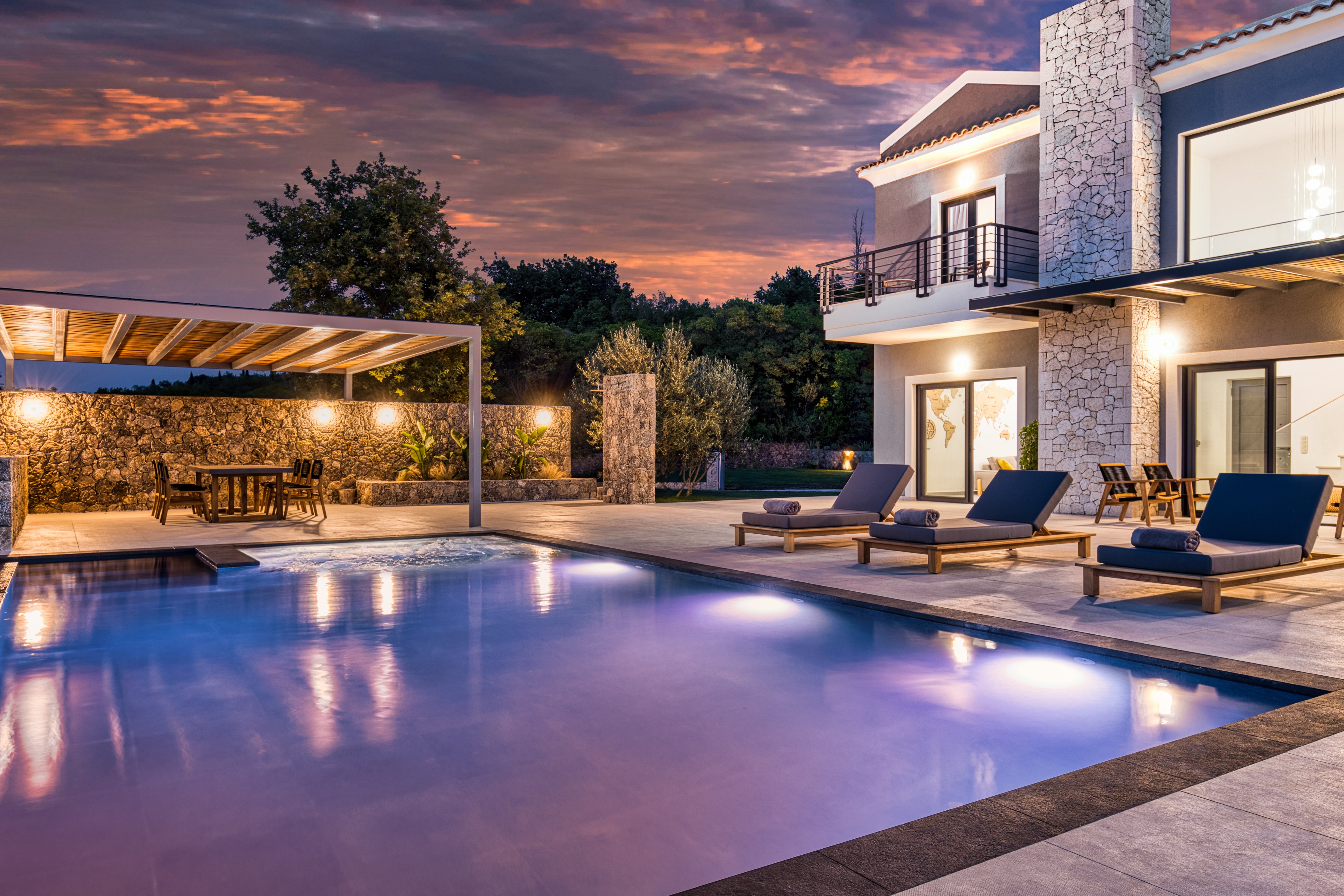 Discover Villa Sunset Bliss, a brand-new Mediterranean-style retreat in Corfu. Nestled in a calm and lush environment, this luxurious villa features two spacious bedrooms with en suite bathrooms, a vast terrace, and a large pool with whirlpool jets. Enjoy breathtaking mountain views and magical sunsets. Amenities include private parking, a washing machine, air conditioning, and high-speed Wi-Fi. Experience unparalleled tranquility and comfort at Villa Sunset Bliss.