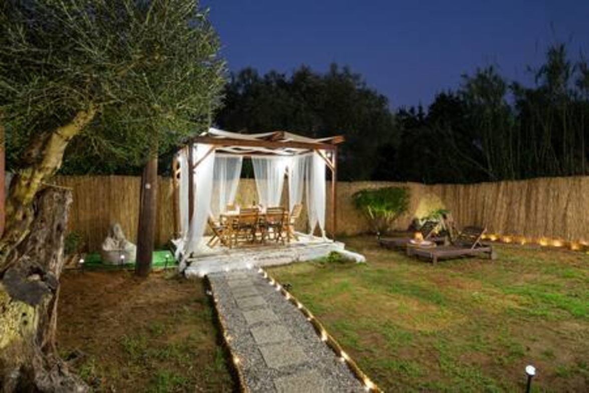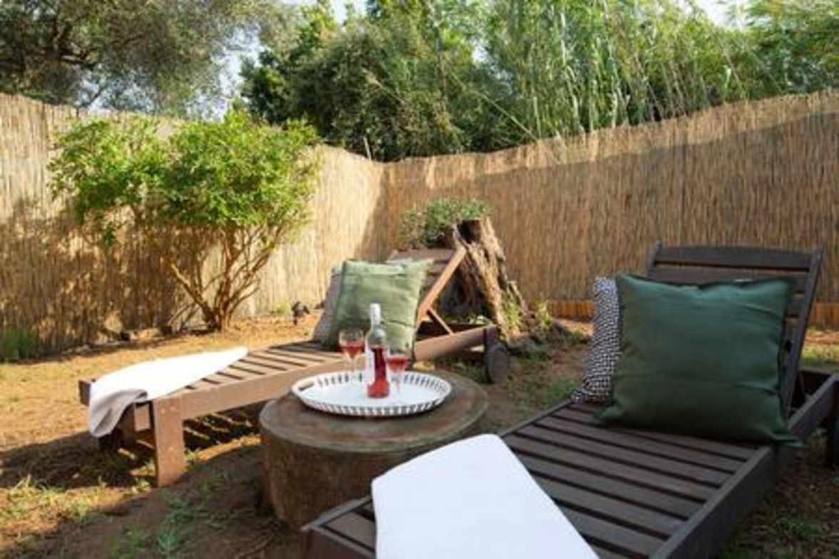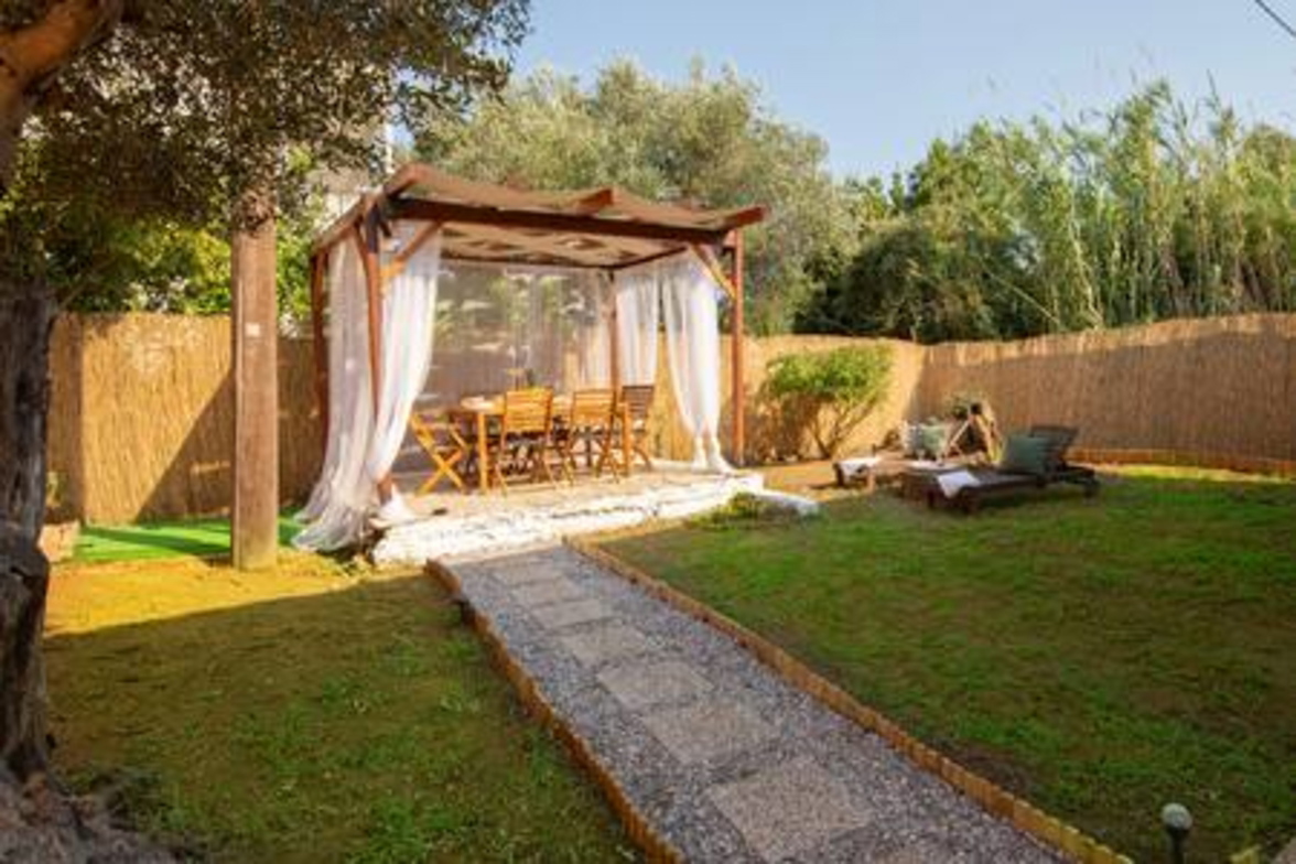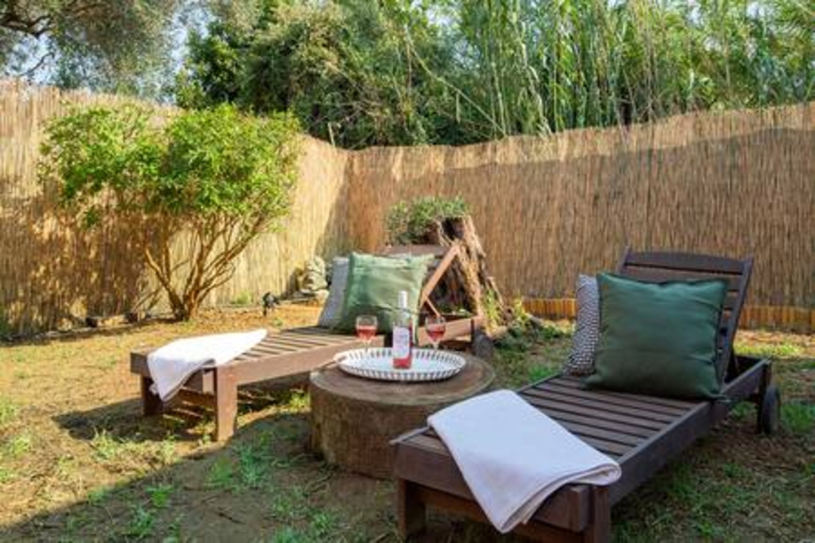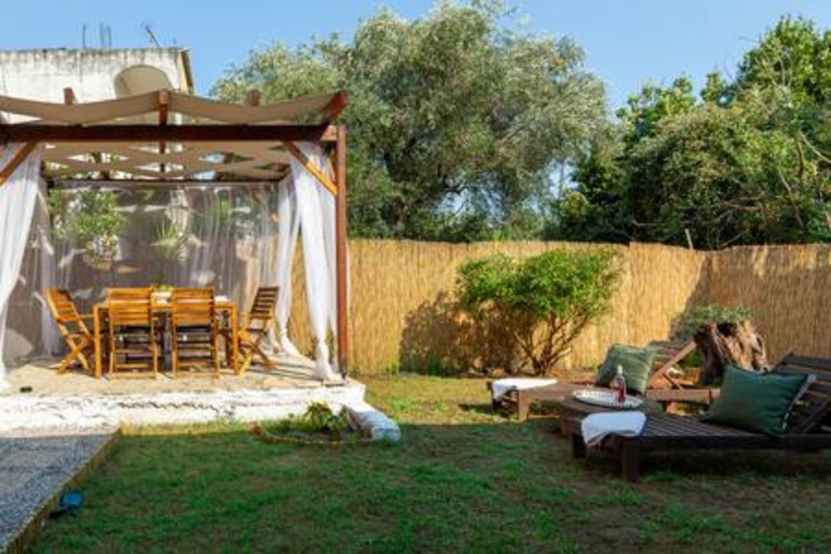 Step outside to the serene garden, a highlight of Maximos House. The garden features a charming gazebo with a table and chairs for six, perfect for outdoor dining or simply enjoying the fresh air. Additionally, there are two sunloungers for those who wish to soak up the sun and relax.